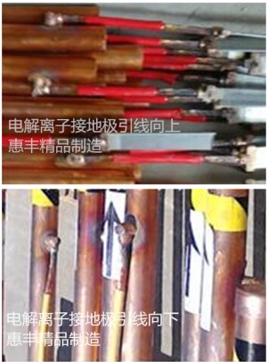 電解離子接地極的引線向下是一種常規(guī)的焊接方式,優(yōu)點是焊接容易操作,運輸方便;缺點是施工時降低了電解離子接地極垂直向下的長度,直接影響到接地電阻。