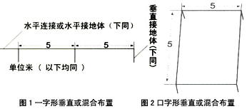如圖1-4,分一字形、口字形、十字形及魚骨形。特別要指出的每根水平接地體之間的距離不應(yīng)小于5米,否則有屏蔽作用,影響降阻效果。此法適用于地形狹窄,但能深挖或有條件使用機(jī)械鉆孔的情況。