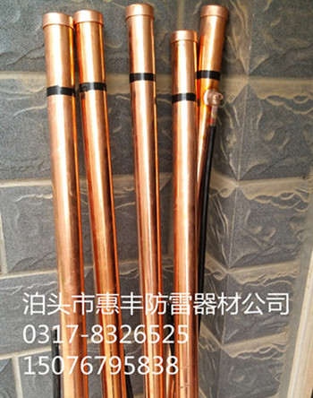 惠豐電解離子接地極屬于銅制品,銅管,銅帽,銅線,銅焊頭。紫銅有頑強的能力,例如在地下古墓里挖出來的銅器,經過上千年的腐蝕氧化依然保留下來。選用銅材做接地材料不但而且導電快,能把閃電瞬間流向土地。、導電快、這是紫銅離子接地極的兩大法寶。