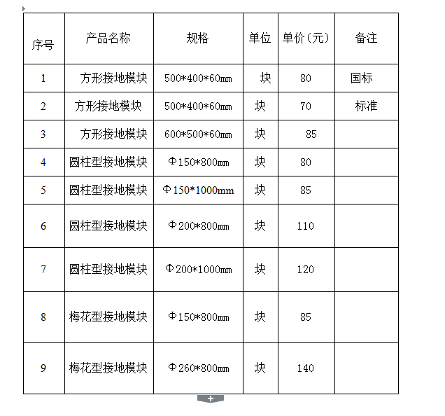石墨接地模塊的具體價格,當然您在采購時還是以咨詢的實際價格為準,此價格表僅作為參考!